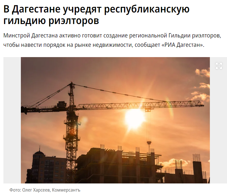 Вице-президент Российской гильдии риэлторов Ирина Зырянова прокомментировала решение властей Дагестана о создании в регионе Гильдии риэлторов